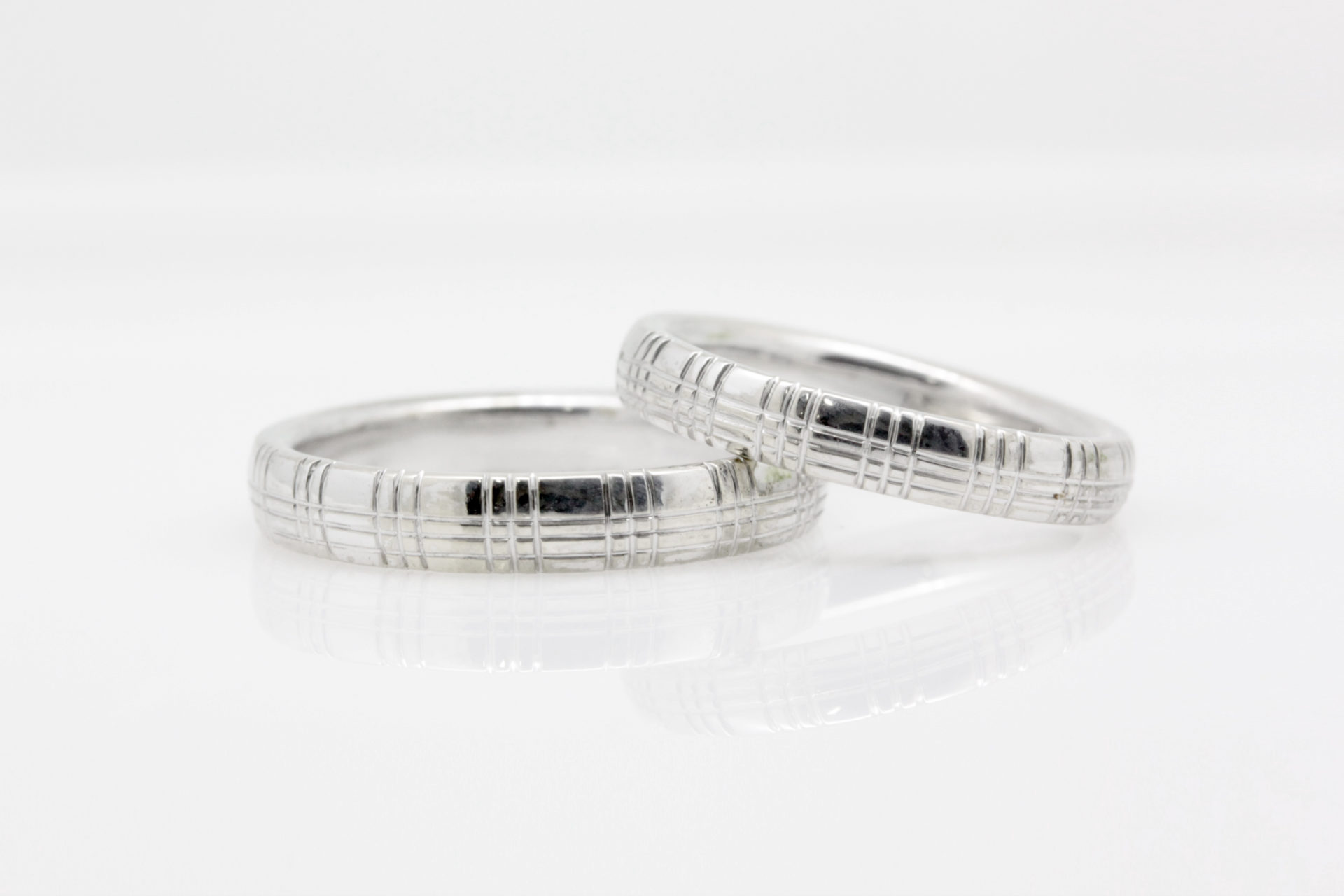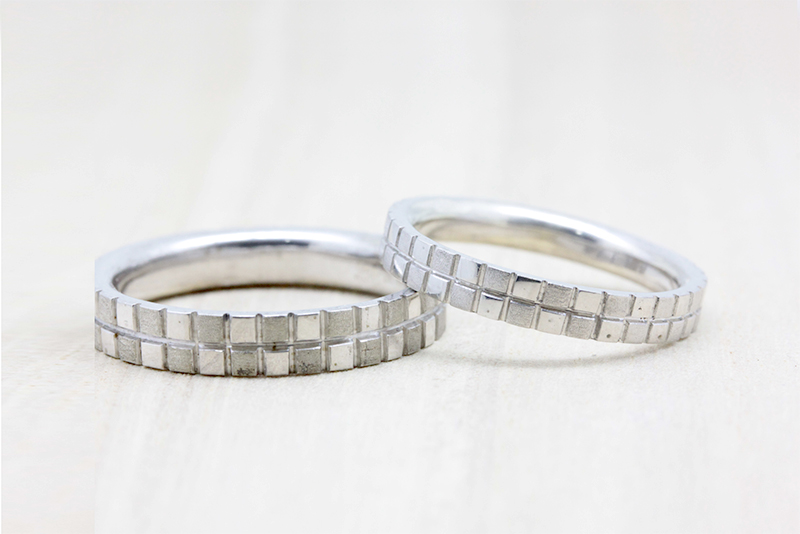 岐阜市の長良川周辺の竹、笹、特産の和傘をイメージして手彫りにてリングに表現したモデル。